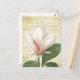 Pretty Pink and White Magnolia Flower Vintage Botanical with antique French script.