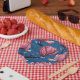 I'd drawn magnolia blossoms with ink then redraw and coloured them in Illustrator to make the pattern.