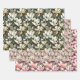 This set of wrapping paper has three different designs of beautiful watercolor magnolias.  First are the white magnolias on a black background.  Second is a pale pink magnolia on a grey background.  The third is a darker pink magnolia on a lavender background.  We also have magnolia tissue paper in the shop to coordinate your look.