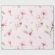 Beautiful magnolia tree with pink flowers and green leafs over light pink background