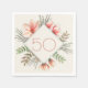 Birthday napkins with magnolia flowers and pussy willow stems. A diamond shaped panel holds her age in thin, pink numbers. Colours are pink, green, and brown for a nature inspired party theme.