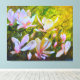 This artwork captures the subtle grace of magnolias in full bloom. The delicate petals, in shades of pink and white, contrast beautifully with the golden and brown background, evoking an autumnal mood. Each flower seems to vibrate with life, its carefully detailed texture conveying a striking realism. The sinuous branches, evoking living veins, add a dynamic and organic dimension, creating a harmonious balance between structure and softness. The composition, although simple, is sophisticated, guiding the viewer's eye through a captivating visual journey. The artist succeeds in immortalising a fleeting moment of natural beauty, evoking emotions of serenity and contemplation. This painting is an ode to nature, full of vivacity and elegance, and it resonates with its remarkable attention to detail.