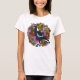 Australian magpie and spring wildflowers t-shirt, features daisies, Sturt's desert pea, eucalyptus flowers, and gum nuts and wax flowers with a magpie. These happy spring or summer colours in this design will make a beautiful addition to any bird or nature lover's wardrobe. Great Aussie gift.