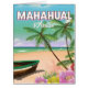 Mahahual, Mexico travel poster featuring a mexican beach and a fishing boat, Yucatan travel print.