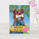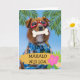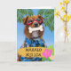 Mahalo Nui Loa, Thank You Very Much written in Hawaiian. Tropical themed card with a dog wearing red swim goggles and a tropical Hawaiian shirt with tropical flowers and palm fronds surrounding it. Art, image, and verse copyright © Shoaff Ballanger Studios, 2022.