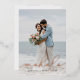 A modern and elegant photo thank you flat card designed to accommodate your favourite vertical or portrait orientated wedding photo with the Hawaiian thank you greeting "Mahalo" as a rose gold foil script text overlay. Personalise with your names and/or wedding date beneath, and add a pre-printed message to the back. To leave blank for your handwritten message, simply delete the sample wording.