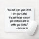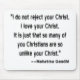 Quotation from Mahatma Gandhi reads, "I do not reject your Christ. I love your Christ. It's just that so many of you Christians are so unlike your Christ." And yes, it is spelled "Gandhi" not "Ghandhi". And a point well made for Christians to pay attention to.