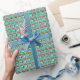 Wrapping paper for Mahjong lovers features text and tile for each suit "Dot", "Crak" and "Bam" on aqua background
