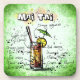 Part of a fun series of bartender's guide designs with drink recipes. This one for a Mai Tai made with ice cubes, light rum, orange juice, dark rum, creme de almond, pineapple juice, with a red cherry, orange segment and little umbrella for garnish.
