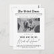 When it's time for your Maid of Honour proposal, this trendy Newspaper Postcard is the perfect sentiment. Featuring the text "Will you be my Maid of Honour?" in a black and white minimalist style with the masthead "The Bridal Times". Keep this photo, or swap it for one of your own! This elegant design it gives your bridemaid proposal a personal touch. Easy to customise with your friend's name and a personal message.