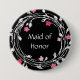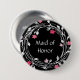 Maid of Honour Black White Pink Floral Wreath 7.5 Cm Round Badge