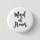 This Maid of Honour button can be worn to many functions like the dress selection, the bachelorette party, or the rehearsal dinner.
