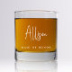 Chic modern keepsake whiskey glass for your maid or matron of honour to celebrate with at your bridal shower, bachelorette party, rehearsal dinner, reception and other wedding events. Personalise with her name in a stylish white calligraphy script and her role in elegant white serif typography.