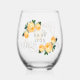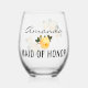 Maid of Honour Gold Glitter Geo Orange Floral Wed Stemless Wine Glass