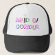 My best friend was getting married so I wanted to have a fun truckers hat made for her for her bachelorette party (she is known for always throwing a hat on whenever we go out). I was able to put my own saying on the hat (it was sassy, but fun) and everyone really loved the hat. The color was exactly as displayed on my computer which is always nice. You can tell it is a quality made hat and is durable and could stand many more bachelorette parties to come. I was very impressed with this website for a few reasons: (1) I was able to design my own hat (and the website was super user friendly!) (2) The hat was affordable, especially for being custom-made and (3) The hat arrived on time and was everything I was hoping it would be. Printing was exactly what I had pictured and what I saw on my screen when I was designing it. No flaws in the stiching - everything looked perfect. I was very impressed with the hat and have no complaints.