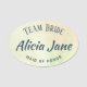 Bride tribe or team maid of honour name tag template with simple dark navy blue typography script against a light pastel pink green and peach cream watercolor washed background. Personalise it with bridesmaid / maid of honour / matron of honour / flower girl name and title. +++++++ You can change colours of text according to your wedding's colour palette, add your own image or modify fonts.
