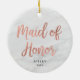 Maid of Honour Personalised Rose Gold Faux Marble Ceramic Ornament. Personalise with your custom information on both front and back.