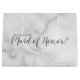 featuring wording "Will You Be My Maid of Honour?" in grey modern script font style on white marble background.