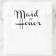 Fully customisable maid of honour script in black with a black diamond to dot the "i."Cute way for the maid of honour to let the world know the news. Perfect for bachelorette parties and other wedding events.