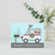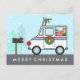 A mail truck that's ready to spread holiday cheer throughout the neighbourhood. Gifts are loaded and ready to be delivered. A wreath hangs on the door. Silly reindeer antlers and red nose are fastened to the jeep. Personalise this card for the mailman or mail lady, it's a fun unique way to say thank you.