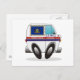 A whimsical cartoon Pennsylvania postal truck with a state flag postage stamp on its side and the capital of on the door ready to deliver your mail.