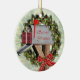 Beautiful Season's Greetings holiday mailbox and wreath ceramic ornament! This lovely double sided digital art holiday ceramic ornament features a mailbox decorated with a lovely red bow with golden trim, and a large holiday wreath around it. The mailbox also has a pretty red and gold wrapped gift showing out of the opened mailbox. Digital art by XG Designs NYC. A great gift for friends, family or your mail carrier! For more occupational, mail carrier holiday cards and gifts please visit our shop!