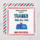 Cheerful and Colourful Mail Box with block letters Thanks for all the mail and deliveries.  Watercolor red and blue diagonal lines in the background.  Customise and personalise card if you know their name.