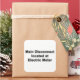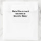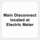 A sheet of six sticker labels with the words "Main Disconnect located at Electric Metre" printed on all stickers in black letters on a white background