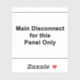 A sticker label with the words "Main Disconnect for this Panel Only" printed in black letters on a white background