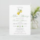 Keep it fresh and simple with this elegant bridal shower invitation. Set against a crisp white background, the design features a small, detailed lemon at the centre, surrounded by a subtle touch of greenery. A few scattered lemon slices add a light, refreshing feel without overwhelming the simplicity of the design. The modern, minimalist typography elegantly presents the event details, balancing playful charm with refined sophistication. This invitation captures the essence of a bright, joyful celebration in a clean, understated way.