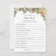 Who Knows the Bride Best? Bridal shower game card featuring a watercolor cascade of greenery and orange citrus fruit for a Main Squeeze themed shower.
