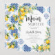 Lemon hues and party cues: a tale of love written in a lemonade stand or lemon trees grove with an Italian blue tiles backdrop. This invitation with a "She found her main squeeze" theme captures the essence of this sweet narrative, inviting you to celebrate the bride's discovery of love and a bright and sunny bridal shower theme. Explore a citrus themed bridal shower that radiates warmth and zest. A trendy and modern watercolor illustration of lemons and lemon branches, arranged in an oval frame, provides the backdrop for this elegant and chic citrus themed bridal shower brunch invitation that also features a watercolor Italian tile painting. Elegant calligraphy rounds up this unique design that is perfect for a spring or summer bridal shower, for a garden party, a festive indoors celebration or a low-key house party.