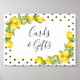 Personalize with one line of custom text in calligraphy script lettering (shown with "Cards & Gifts"), framed by watercolor wreath of lemons and greenery surrounded by polka dots.