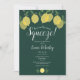 Featuring lemons greenery on an emerald green background, this cute botanical bridal shower invitation can be personalised with your special event information and your monogram initials on the reverse. Designed by Thisisnotme©