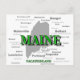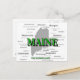Maine state pride image including map silhouette with cities, towns and nickname.