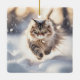 Maine Coon Cat Dashing Through The Snow Ceramic Ornament
