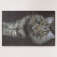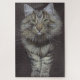 A pastel painting of a lovely, very fluffy Maine Coon tabby Cat adorns this fun puzzle!