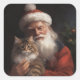 Maine Coon With Santa Claus Festive Christmas Square Sticker