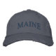 MAINE printed in caps with a slight arch in a subtle blue on blue colour scheme - but feel free to pick your own hat style and even change the embroidery colour.