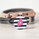 Let your furry friend show some home state pride with this cute Maine ID tag. Design features a white silhouette map of the state of Maine in pink with a white heart inside, on a preppy navy blue and white stripe background. Add your pet's name and contact information to the back in white lettering on a pink background.