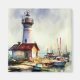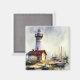 Maine Lighthouse and boats Watercolor Art Magnet