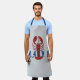 Lobster apron with "Maine" text. A big red lobster is upright on a silver grey background with dark blue lettering. This long apron is perfect for guys who love to cook. The design also transfers fine to the shorter apron, and the kid's size. The text can be removed easily, or change it to something that fits the space. An example would be "Dad" or a shorter name.