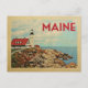 Maine design in Vintage Travel style featuring a lighthouse on the cliff shore, overlooking the Atlantic ocean. Thanks to Loren Kerns's photo as base: www.flickr.com/photos/lorenkerns/4822059747