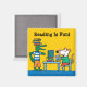 The library is so much fun! Maisy and Charley are enjoying every moment of their time at the library in this Lucy Cousins illustration from her book "Maisy Goes to the Library" (published by Candlewick Press). The two friends are surrounded by books; Maisy sits at the table, reading a book about fish, while Charley balances books on his head!
