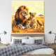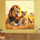 A proud lion family rests together in the African savannah under a warm sunset. The image symbolizes strength, cohesion and natural beauty. Ideal for animal lovers, nature lovers or as a powerful decoration.