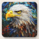 These drink coasters feature an image of a fierce bald eagle. Colours used include blue, gold, orange, brown, white, and tan. A stained glass overlay effect gives added interest to the design. A beautiful, majestic wildlife image for your home or office.