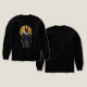 With midnight blue muscular form, glowing celestial eyes, royal Nemes headdress of obsidian and gold, and ornate lapis lazuli collar, he firmly holds the sacred Ankh – the Key of Life. A grand golden solar disk engraved with hieroglyphs shines behind him.