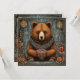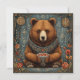 Majestic bear sitting calmly, adorned with a beautifully detailed necklace. It holds a bowl filled with red berries, surrounded by floral decorations and various symbols in the background. The artwork combines elements of nature with mystical symbols, creating a captivating and serene atmosphere.