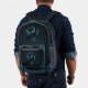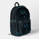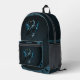 Majestic black raven sitting on an ornate, stylised branch. The combination of the cool blue and white tones of the flowers creates a harmonious contrast with the warm gold tones of the beak. Overall, the design conveys a sense of strength, elegance and mystery
