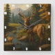 This square wall clock showcases a serene forest scene with a majestic buck standing in a flowing stream, accompanied by two fawns. The rich autumn colours of the trees and distant mountains create a tranquil and picturesque setting. Perfect for nature lovers, hunters, or anyone seeking a peaceful wildlife accent for their home.